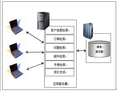 前臺接待人員接到客戶的請求之后,可以根據(jù)客戶提供的信息查詢到該客戶的所有相關(guān)信息,包括姓名、電話號碼、地址、所持有的產(chǎn)品號、歷史的購買和維修記錄等;根據(jù)用戶的問題描述,查詢出歷史記錄中相同的問題及解決方法,從而提供給用戶詳細(xì)的信息(維修方法,所需部件,需要的時(shí)間和詳細(xì)報(bào)價(jià)等);得到客戶的同意后,為用戶生成訂單。