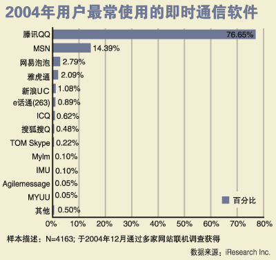 巨大的商機(jī)和財(cái)富也催生出了眾多的跟風(fēng)者,網(wǎng)易泡泡、新浪聊聊吧、搜狐搜Q等IM軟件層出不窮,與其說(shuō)他們是看中即時(shí)通信市場(chǎng)的強(qiáng)大潛力,更不如說(shuō),他們都想要通過(guò)IM軟件的形式來(lái)爭(zhēng)取短信的流量。“我們希望通過(guò)這種形勢(shì),進(jìn)一步提高新浪在短信方面的競(jìng)爭(zhēng)力,而且最近的統(tǒng)計(jì)數(shù)據(jù)已經(jīng)表明,隨著注冊(cè)用戶忠誠(chéng)度的提高和傳播效果的擴(kuò)散,我們的市場(chǎng)占有率在穩(wěn)固提高”,新浪聊聊吧項(xiàng)目負(fù)責(zé)人如是說(shuō)。