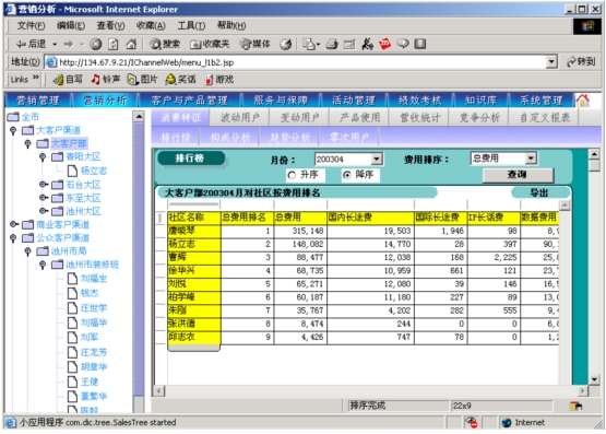 本系統(tǒng)是以市場(chǎng)為導(dǎo)向、客戶為中心、效益為目標(biāo)的電信營(yíng)銷和服務(wù)的支撐系統(tǒng),為企業(yè)經(jīng)營(yíng)服務(wù)和營(yíng)銷戰(zhàn)略提供有力的支撐,通過對(duì)業(yè)務(wù)收入、業(yè)務(wù)發(fā)展以及市場(chǎng)競(jìng)爭(zhēng)的深入分析,從而達(dá)到留住老客戶、發(fā)現(xiàn)新客戶,了解競(jìng)爭(zhēng)對(duì)手動(dòng)態(tài),及時(shí)掌握市場(chǎng)變化趨勢(shì)的目的。
