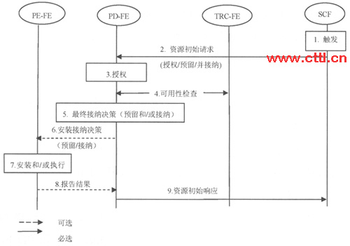 在CPE發(fā)起資源請(qǐng)求的場景下,經(jīng)過上面第3步授權(quán)后(見圖2),PD-FE將向SCF返回授權(quán)結(jié)果。隨后的流程可以描述如下。