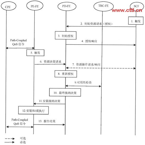 圖3 CPE發(fā)起QoS控制的授權(quán)、預(yù)留和接納流程