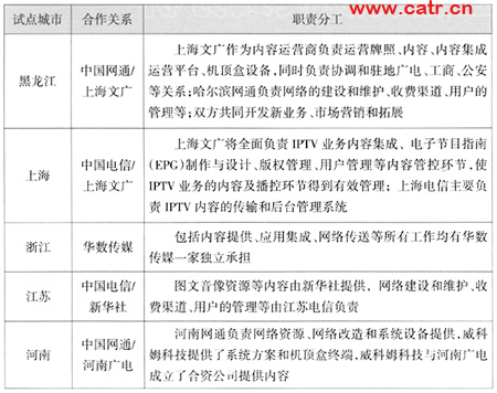 表1 我國(guó)典型IPTV試點(diǎn)城市合作