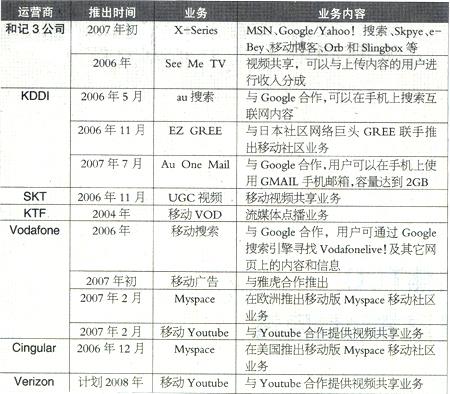 全球主要移動運(yùn)營商推出的新型移動互聯(lián)網(wǎng)業(yè)務(wù)
