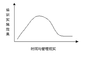 從圖一我們得知,在培訓(xùn)實(shí)施認(rèn)識之初,企業(yè)對于培訓(xùn)需求的同化程度越高,培訓(xùn)實(shí)施效果就會越好,反之若是我們的同化層面只停留在實(shí)施層面,得不到管理層、戰(zhàn)略層的同化支持自然培訓(xùn)效果不能長久,只能達(dá)到一個短時間的定向認(rèn)識,隨著時間與現(xiàn)實(shí)的變化,培訓(xùn)效果則會一蹶不振。(見圖二)