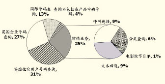 英國(guó)各類(lèi)號(hào)碼查詢業(yè)務(wù)量的比重(呼叫次數(shù))
