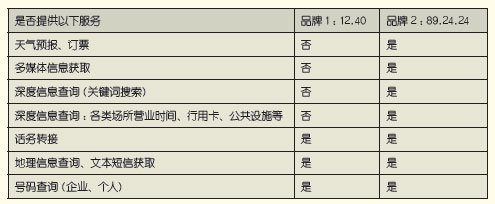 而另一家歐洲領(lǐng)先的電話信息查詢運(yùn)營(yíng)商意大利SEAT Pagine Gialle則細(xì)分客戶需求,推出從基本號(hào)碼服務(wù)到地理信息搜索、預(yù)定等一系列服務(wù),并通過(guò)中低端(12.40)和中高端(89.24.24)兩個(gè)品牌進(jìn)行差異化運(yùn)營(yíng)。從下表中可以看到兩個(gè)品牌提供的服務(wù)。其中,中高端品牌89.24.24除了簡(jiǎn)單的號(hào)碼查詢、位置查詢和話務(wù)轉(zhuǎn)接以外,還提供一系列深度信息查詢等服務(wù),并且已經(jīng)占到總話務(wù)量的63%。