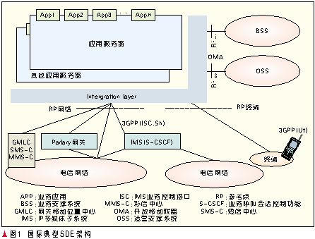 為了解決這一迫切的問題,過去一年中一個新的思路正逐步出現(xiàn),即:如果不能把原來的non-SIP應用改造為SIP應用,那么就擴展原來的IMS業(yè)務(wù)體系架構(gòu)本身,使其在管理控制SIP應用的基礎(chǔ)上,也能夠管理控制non-SIP和non-IMS的應用[3]。在這一新的思路下,出現(xiàn)了新的發(fā)展動向:在IMS之上建立開放融合的業(yè)務(wù)提供環(huán)境(SDE),