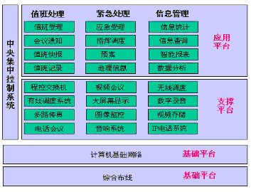 首信應急指揮系統(tǒng)由指揮調(diào)度、監(jiān)控、信息綜合系統(tǒng)和基礎設施保障系統(tǒng)組成,具有指揮調(diào)度、監(jiān)控和信息綜合等功能。
