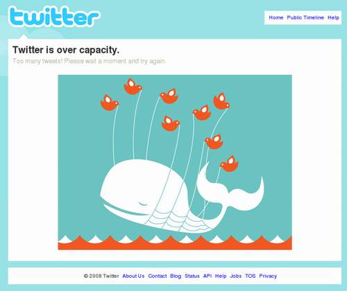 當(dāng)Twitter宕機(jī)或者訪問量超過負(fù)荷時(shí),用戶會(huì)被導(dǎo)向一個(gè)顯示有“失落的鯨魚”的頁面