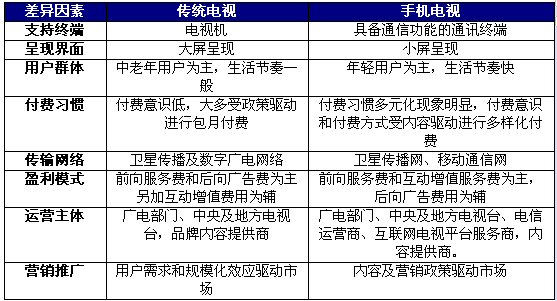 另外通過在終端支撐、網絡傳輸、盈利模式和覆蓋用戶來看,手機電視產業(yè)和傳統(tǒng)電視也存在著比較大的差異: