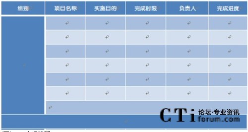 表格內(nèi)容包括:規(guī)劃實施項目的名稱、目的、完成時限要求、負(fù)責(zé)人員及進(jìn)度等。