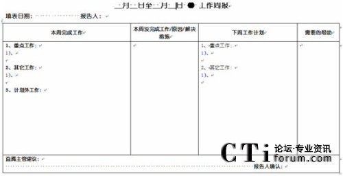 用于各級管理人員填寫匯報工作周總結(jié),同時也是與上一級的一種溝通渠道。