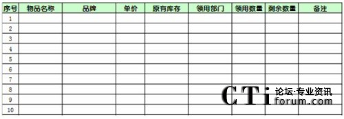 表格內(nèi)容包括:物品名稱、品牌、單價、庫存及領(lǐng)用情況、剩余數(shù)量等。