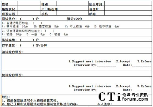 1. 所有參加面試人員的信息,無論最終是否通過都須記錄。