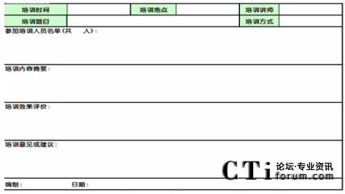 用于對培訓(xùn)實施過程及結(jié)果的記錄,包括培訓(xùn)考勤記錄及培訓(xùn)效果評估部分。