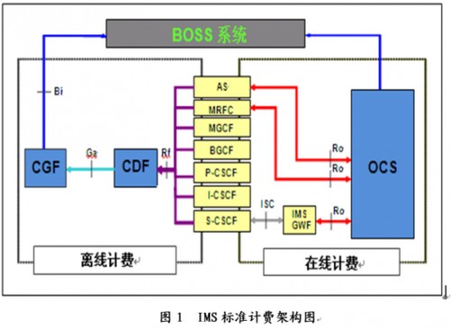 IMS在線計費涉及到的計費功能單元包括:S-CSCF、AS和MRFC。AS和MRFC具有在線計費消息觸發(fā)功能,并通過基于Diameter協(xié)議的Ro接口與OCS(在線計費系統(tǒng))進行通信。S-CSCF通過基于SIP協(xié)議的ISC接口觸發(fā)業(yè)務(wù)控制流程到IMS-GWF(IMS網(wǎng)關(guān)功能)觸發(fā)相應的在線計費控制消息,實現(xiàn)在線計費。OCS通過Ro接口獲得在線計費請求和計費信息,對IMS用戶的網(wǎng)絡(luò)資源使用請求進行授權(quán),并進行實時的計費。
