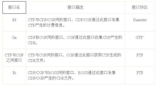 IMS離線計費相關(guān)接口及其對應的協(xié)議要求參見表1。
