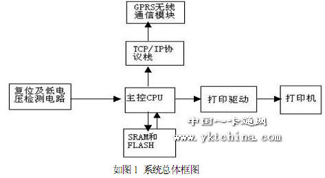 本系統(tǒng)軟件部分主要包括4 個(gè)部分,l、GPRS 撥號部分2、TCP/IP 協(xié)議棧部分3、打印驅(qū)動(dòng)部分4、存儲(chǔ)部分。