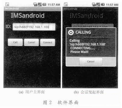 封裝后安裝到Android手機、MID或虛擬機中,并發(fā)起會話。與開源SIP軟件Linphone通信的結果如圖2所示。