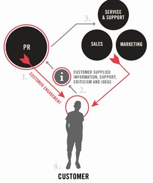 社會(huì)化CRM賦予了企業(yè)公關(guān)部門(mén)更重要的角色,通過(guò)公關(guān)部分與消費(fèi)者更多的互動(dòng),從中獲取消費(fèi)者的反饋信息、褒貶意見(jiàn)、新想法新創(chuàng)意。之后再通過(guò)銷售、市場(chǎng)推廣以及產(chǎn)品服務(wù)等措施來(lái)吸引更多目標(biāo)消費(fèi)群,并用公關(guān)活動(dòng)來(lái)進(jìn)一步推廣。