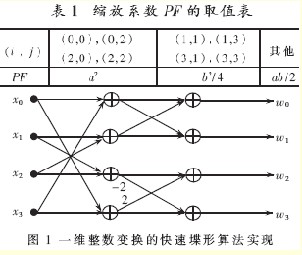 在以前的視頻編碼標(biāo)準如MPEG-2和H.263中,對于預(yù)測的殘差數(shù)據(jù)都是采用8×8離散余弦變換(DCT)[1]作為變換的基本運算操作;而在H.264/AVC編碼標(biāo)準中,則采用類似DCT變換形式的基于4×4像素塊的整數(shù)變換。由于變換塊的尺寸縮小,運動物體的劃分更精確,而且運動物體邊緣處的銜接誤差大為減小。