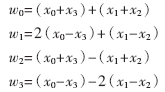 (1)在求取變換陣W=CXCT時,根據(jù)變換的對稱性,將X的列變換(矩陣左乘)與行變換(矩陣右乘)分開實現(xiàn),把二維變換分割為兩次一維變換,并采用快速堞形算法[4]來實現(xiàn)。一維變換的快速算法實現(xiàn)如圖1所示,其中的列變換可用如下算式表示: