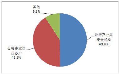 從細(xì)分市場(chǎng)來看,政府及公共安全機(jī)構(gòu)為最大的細(xì)分市場(chǎng),占總市場(chǎng)規(guī)模的49.8%,而且比重仍有上升趨勢(shì),公用事業(yè)行業(yè)客戶市場(chǎng)占比41.1%,其他客戶占9.1%。