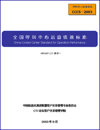 《全國呼叫中心運營績效標(biāo)準(zhǔn)》(China Contact Center Standard for Operation Performance,簡稱"CCCS-OP-2003標(biāo)準(zhǔn)"),是由CTI論壇客戶關(guān)系管理學(xué)院負(fù)責(zé)策劃和起草,并聯(lián)合該領(lǐng)域內(nèi)具有代表性的客戶服務(wù)提供商、運營商一起同心協(xié)力,站在行業(yè)發(fā)展的最前沿,共同創(chuàng)建的客戶服務(wù)及呼叫中心行業(yè)運營標(biāo)準(zhǔn),并最終由信息產(chǎn)業(yè)部中國信息化推進聯(lián)盟客戶關(guān)系管理專業(yè)委員會發(fā)布實施的行業(yè)標(biāo)準(zhǔn)。該標(biāo)準(zhǔn)填補了國內(nèi)在該領(lǐng)域的一項空白,并將帶動整個行業(yè)不斷地向前發(fā)展。