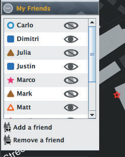 該軟件名為iFind,乍一看類似任何典型的即時通信軟件,也需要雙方相互邀請,這樣才能進(jìn)入對方的好友名單。用戶可以選擇暫時隱藏起來,不讓某個好友或者整個群組看見自己,他們還可以完全把某人從好友名單中刪除。不過iFind的好友名單增加了地圖,可以實時顯示這些朋友在MIT校園的哪個角落。地圖顯示了通過Wi-Fi登錄到MIT網(wǎng)絡(luò)上的好友,讓用戶可以為每個朋友創(chuàng)建獨特的迷你頭像,能看到誰在學(xué)校河邊閑逛、誰在樓上圖書館看書。