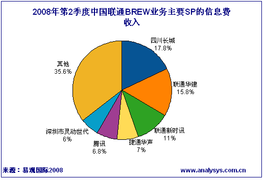 易觀國際近期發(fā)布《2008年第2季度中國手機游戲市場季度監(jiān)測》顯示:中國移動JAVA業(yè)務(wù)SP信息費方面,掌中米格、北京新浪分居前兩名,兩者市場占有率已提高至31.9%。其中掌中米格信息費季度收入達到2505.86萬元,市場占比為17.3%,而新浪信息費收入市場占比為14.6%。信息費收入的第3至第5名依次為TOM、com2us、掌尚星空,三者總市場占比為9.7%。