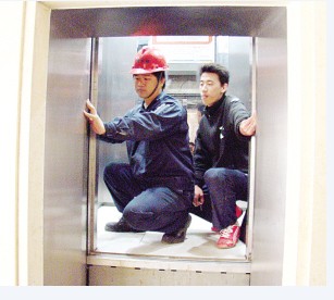 電梯從15樓降下,忽然一震,停住了。記者感覺有些緊張,同在電梯中的技術人員告訴記者,這是電梯在故障下的保護狀態(tài)。
