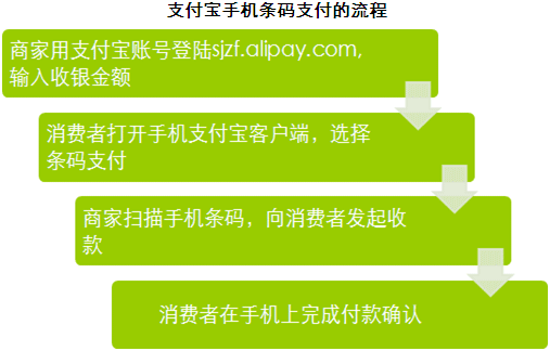 、 支付成本低。不同于不斷上漲的刷卡成本,支付寶手機(jī)條碼支付只需一臺可上網(wǎng)筆記本以及一只支付寶免費(fèi)提供的掃描槍(或一部可上網(wǎng)的智能手機(jī))即可完成交易。