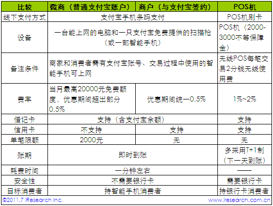 、 可用支付寶手機(jī)條碼支付的消費(fèi)者,必須同時滿足擁有智能手機(jī)、手機(jī)內(nèi)安裝有支付寶客戶端以及注冊有支付寶賬號三個條件,這也間接導(dǎo)致潛在用戶規(guī)模相比POS機(jī)偏小。