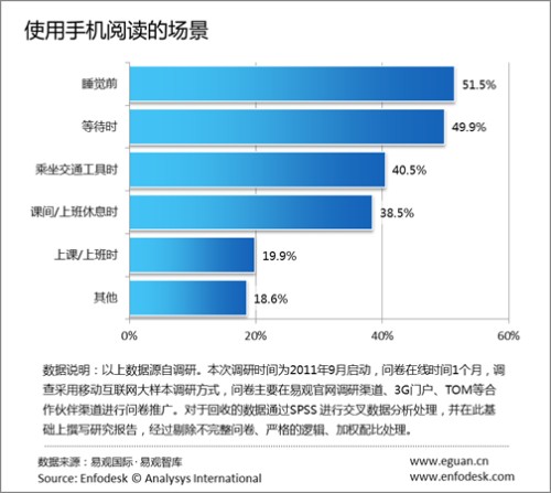 本次調(diào)研時(shí)間為2011年9月啟動(dòng),問卷在線時(shí)間1個(gè)月,調(diào)查采用移動(dòng)互聯(lián)網(wǎng)大樣本調(diào)研方式,問卷主要在易觀官網(wǎng)調(diào)研渠道、3G門戶、TOM等合作伙伴渠道進(jìn)行問卷推廣。對(duì)于回收的數(shù)據(jù)通過SPSS 進(jìn)行交叉數(shù)據(jù)分析處理,并在此基礎(chǔ)上撰寫研究報(bào)告,經(jīng)過剔除不完整問卷、嚴(yán)格的邏輯、加權(quán)配比處理。