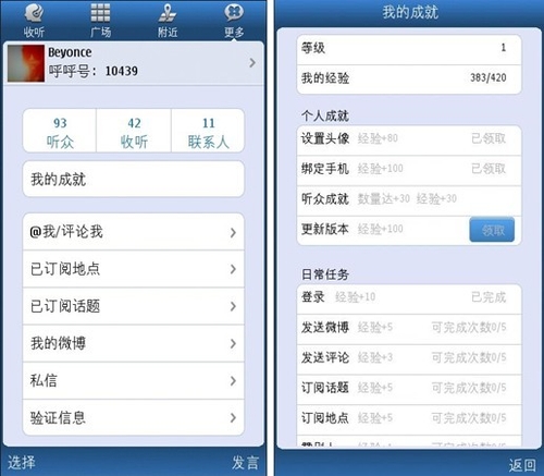 語音微博1.6 for Symbian新加入的私信和經(jīng)驗(yàn)系統(tǒng)的加入使得用戶間信息的交流更緊密、分享更便捷。從此,千里傳音不是夢。