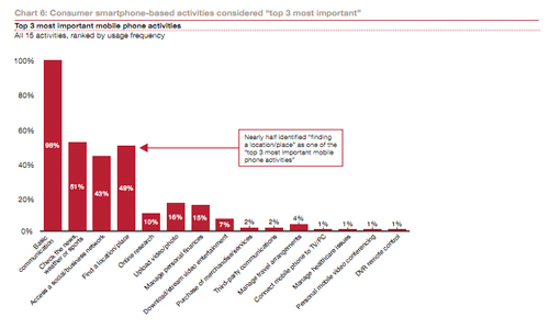 在用戶認(rèn)為最重要的移動(dòng)活動(dòng)中,尋找本地位置位于基本通信功能、新聞閱讀之后,而且超過(guò)56%的用戶每周至少會(huì)使用手機(jī)一次查找位置信息