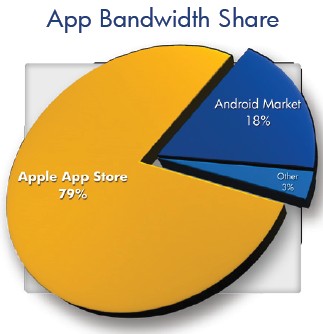 但根據(jù)12年1月份Arieso的一份報告所說,全球帶寬是掌握在一小部分的用戶手中的,1%的手機(jī)注冊用戶消耗著一半的下載數(shù)據(jù)量,而其中1/3為智能手機(jī)使用者。