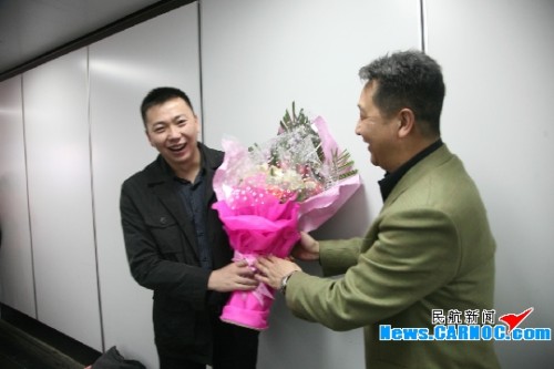 圖1:南航新疆分公司市場(chǎng)銷(xiāo)售部領(lǐng)導(dǎo)迎接“南航優(yōu)秀青年勞務(wù)工”李江濤載譽(yù)歸來(lái)