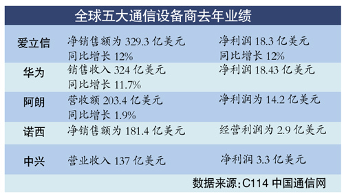 至此,全球五大通信廠商都發(fā)布了去年業(yè)績,全球通信前5強(qiáng)中,中國已占2席。不久前,中興通訊(微博)總裁史立榮在IT領(lǐng)袖峰會(huì)上表示,全球電信設(shè)備領(lǐng)域基本上已經(jīng)進(jìn)入了一個(gè)寡頭時(shí)代,這是技術(shù)投入加大形成高門檻的結(jié)果。