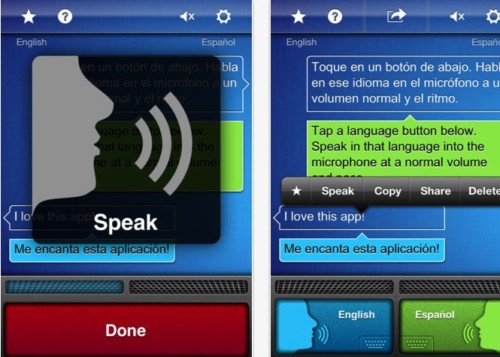 SayHi Translate支持33種語言和方言的翻譯,包括英語,中文,西班牙語和德語等,并能夠完成所有這些語言的交互翻譯。應(yīng)用的使用方法也非常簡單,你只需選擇你要翻譯成的語言種類,輕點按鈕,然后對著手機說話,應(yīng)用會捕捉你的語音信息,將其翻譯成指定語言的文本信息并用目標(biāo)語言說出來。