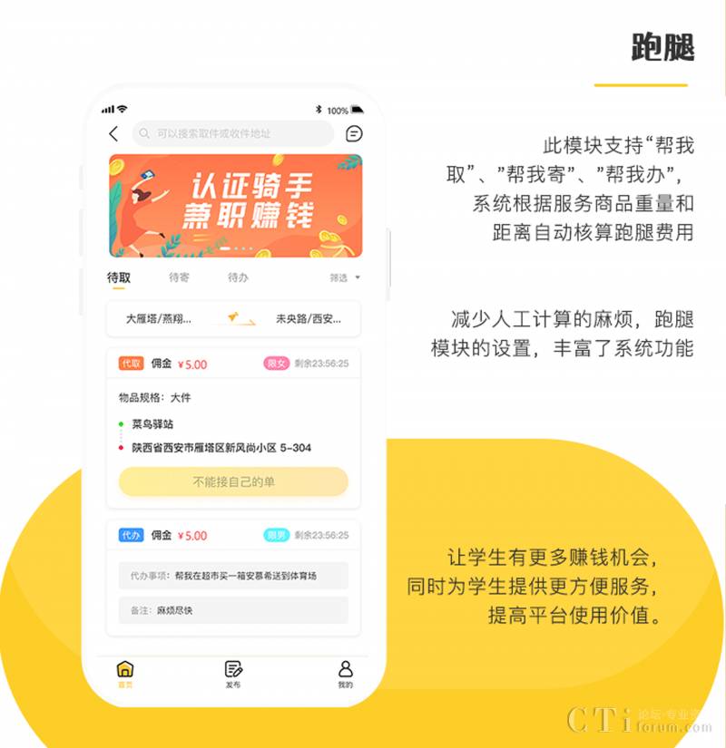 簡單來說就是快速搭建外賣系統(tǒng)、校園平臺、跑腿、點餐、零售行業(yè),打造類似美團、餓了么的外賣平臺。校園云生活服務(wù)小程序提供跑腿系統(tǒng)、信息發(fā)布系統(tǒng)、話費充值系統(tǒng)、搭建同城外賣、校園外賣平臺等生活服務(wù)平臺,大學(xué)生日常學(xué)習(xí)生活必不可少!