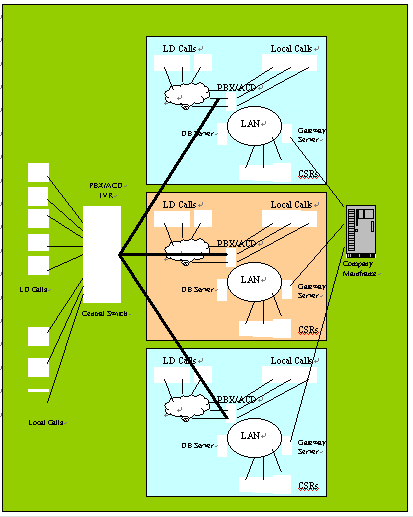 。。對(duì)于獨(dú)立或集中式呼叫中心而言,來電通常不能被自由地在該類型的呼叫中心之間轉(zhuǎn)接與信息共享。對(duì)于每一個(gè)獨(dú)立式呼叫中心而言,都擁有同樣的語音及數(shù)據(jù)基礎(chǔ)架構(gòu),他們彼此間的唯一區(qū)別就是支持來話的能力,或者說規(guī)模的不同,以及所處地理位置的不同。為了顧客方便的需要,這種類型的呼叫中心通常被建在人口眾多,經(jīng)濟(jì)相對(duì)比較發(fā)達(dá)的大城市。同時(shí),這些大城市中擁有非常巨大的潛在消費(fèi)人群和客戶。坐落在這些大城市或距大城市很近的呼叫中心,每日處理大量來自于當(dāng)?shù)氐碾娫挕R虼,呼叫中心要減少來自于800號(hào)企業(yè)負(fù)擔(dān)的電話通訊費(fèi)用。此外,在大城市及其周圍也為呼叫中心提供了大量的勞動(dòng)力資源。而呼叫中心所需的維修支持與其他相關(guān)設(shè)備的供應(yīng)商通常也集中在這些區(qū)域,保證了對(duì)其服務(wù)的快速響應(yīng)。