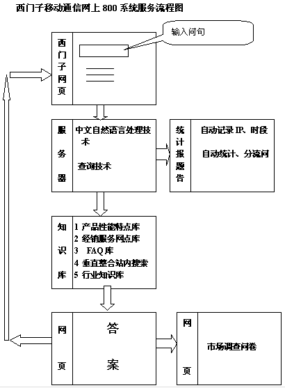 網(wǎng)上800系統(tǒng)的另外一個(gè)特點(diǎn)是自然語句的提問方式,客戶可以更準(zhǔn)確、更快捷利用系統(tǒng)找到找到想要的信息;對(duì)于企業(yè)而言,客戶在用這種方式提問時(shí),他提的問題也是企業(yè)非常重要的,表達(dá)了客戶的需求和想法。提的問題越明確,企業(yè)得到的有價(jià)值的信息就越多。在其系統(tǒng)的后臺(tái),客戶提出的各種問題都被記錄下來,結(jié)合其它的流量數(shù)據(jù),這些信息被不斷的積累、分析,為其營銷決策服務(wù)。而且這種人性化互動(dòng)溝通方式的直接結(jié)果是,瀏覽者首先會(huì)感到自然而不受專業(yè)知識(shí)的約束,他會(huì)更多的去嘗試使用自然語言的方式來取得服務(wù),增加目標(biāo)客戶對(duì)客戶服務(wù)網(wǎng)站的依賴性。據(jù)悉,該系統(tǒng)僅首月就達(dá)到了十幾萬的訪問量。