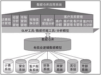 圖1 電信行業(yè)數(shù)據(jù)倉(cāng)庫(kù)系統(tǒng)解決方案體系結(jié)構(gòu)圖