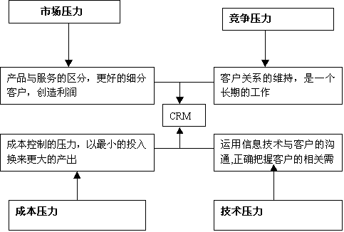 產(chǎn)品與服務(wù)的區(qū)分,更好的細分客戶,創(chuàng)造利潤客戶關(guān)系的維持,是一個長期的工作成本控制的壓力,以最小的投入換來更大的產(chǎn)出運用信息技術(shù)與客戶的溝通,正確把握客戶的相關(guān)需求 市場壓力競爭壓力成本壓力技術(shù)壓力