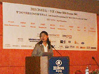。。雖然"2003CRM論壇·中國"香港會場因SARS的緣故而臨時取消,但這絲毫沒有影響到北京、上海以及深圳會場的成功舉辦,這三場論壇共有300余人出席,超出了主辦單位的預定人數(shù)。