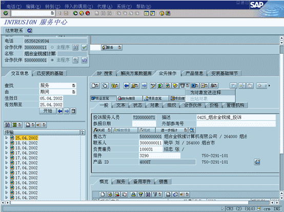 客戶服務功能包括記錄抱怨相關(guān)的事件信息或錯誤描述概況。資源規(guī)劃工具允許用戶察看事件相關(guān)的員工和資源的可用性,F(xiàn)場服務功能可以通過與可以使用WAP的設備、Palm、Pilot、PAQ