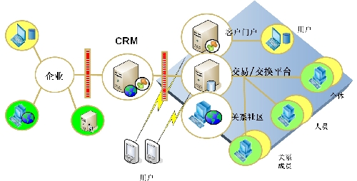 企業(yè)的社區(qū)營銷架構(gòu)不僅僅是在構(gòu)建一個網(wǎng)絡(luò)社區(qū),而是圍繞企業(yè)的應(yīng)用充分結(jié)合起來,包括企業(yè)的CRM系統(tǒng)、消費(fèi)者門戶、社區(qū)以及交易交換平臺等。如圖所示: