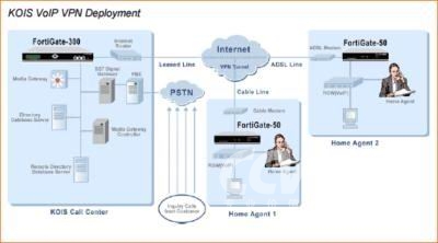 KOIS利用FortiGate網(wǎng)絡(luò)安全網(wǎng)關(guān)在保持所需要的性能級別和系統(tǒng)需求的基礎(chǔ)上全面保護(hù)了VPN的數(shù)據(jù)網(wǎng)絡(luò)。FortiGate-300網(wǎng)絡(luò)安全網(wǎng)關(guān)安全在呼叫中心,F(xiàn)ortiGate-50安裝在每個家庭代理中。
