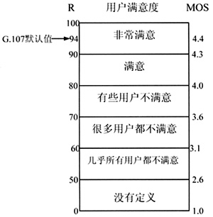 在E-Model測量中包含了影響窄帶電話通話質(zhì)量的多種傳輸參數(shù),在ITU-T G.107中提供了一組默認值,當終端和應用環(huán)境是正常的,可以直接使用這些默認值。根據(jù)這些默認值和一些可求的參數(shù)比如延時、丟包率等可以得到E-Model輸出的傳輸參數(shù)R。R直越大,說明語音質(zhì)量越好,R值的范圍是0-100,0是最差的,100是最好的。